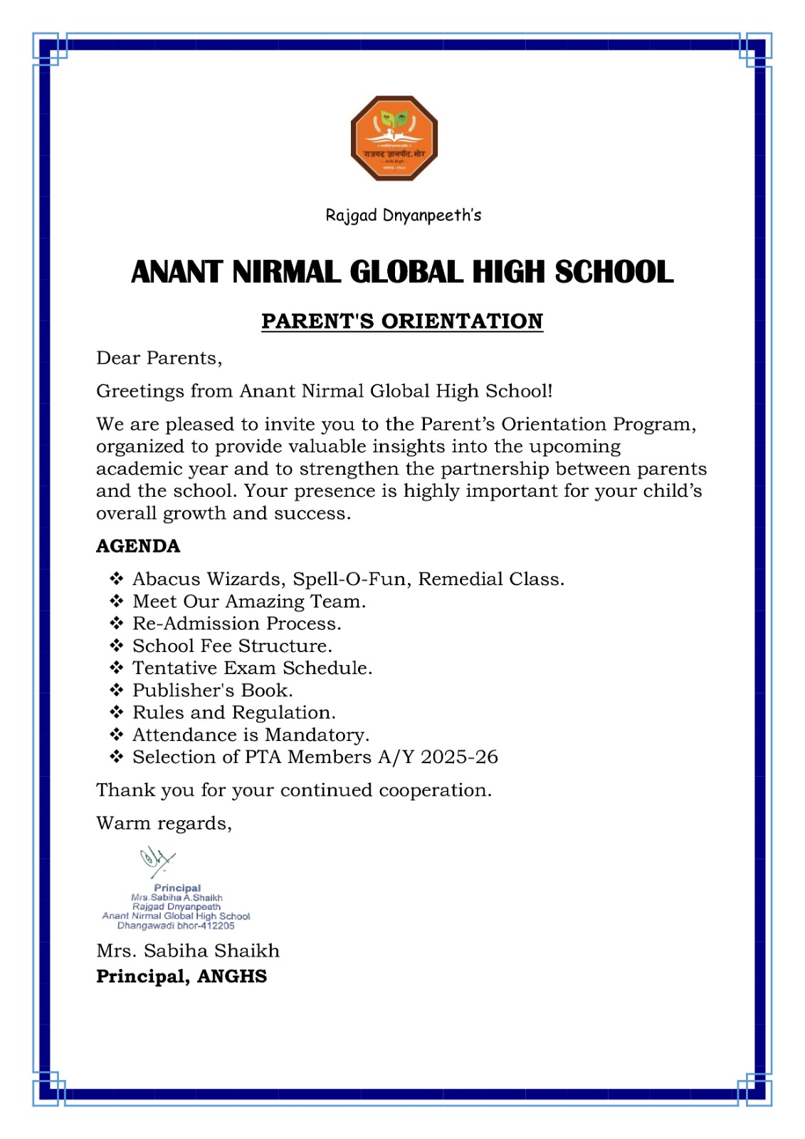 Circular No 2 PARENT'S ORIENTATION MEETING NOTICE