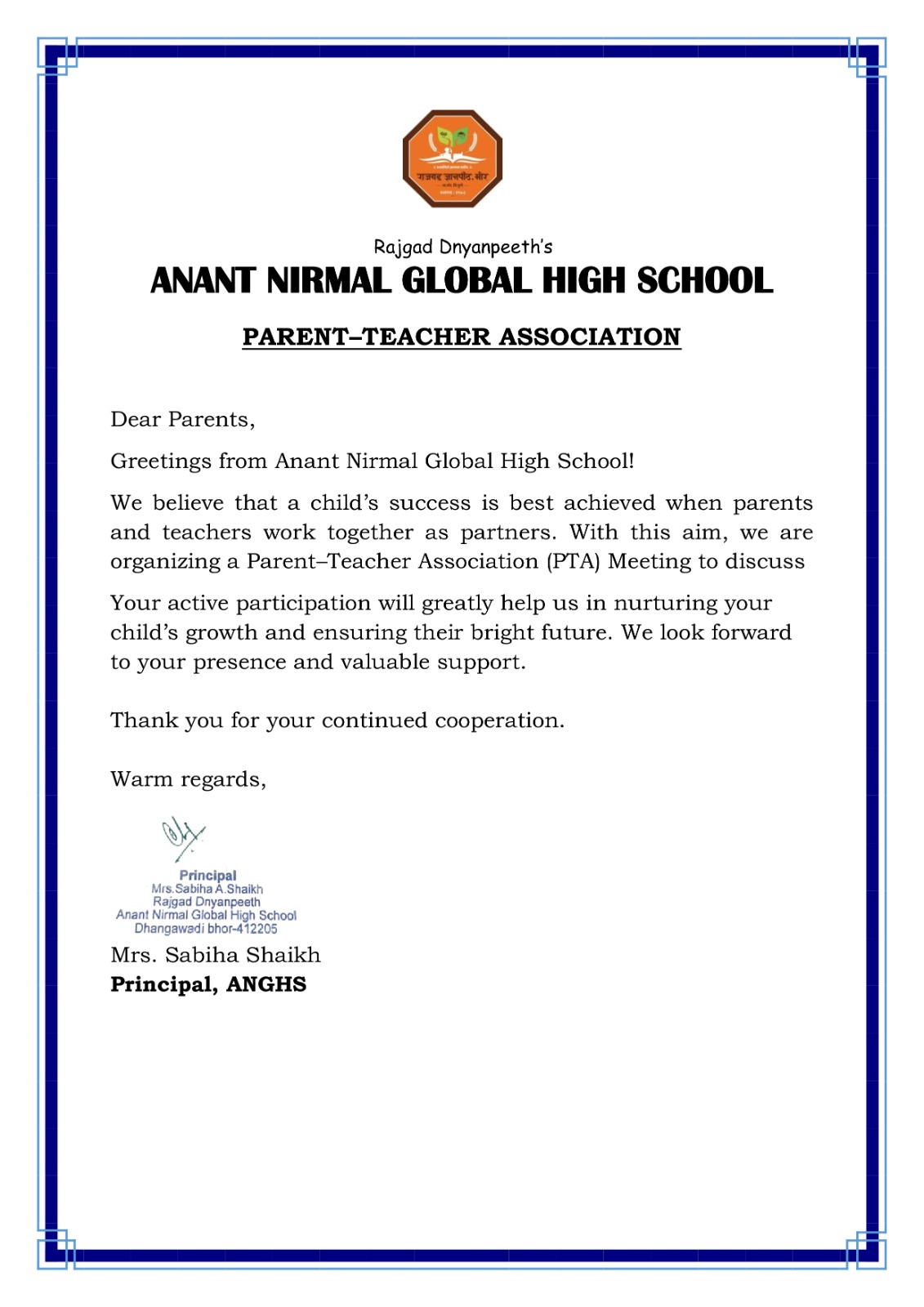 Circular No 1 PARENT–TEACHER ASSOCIATION (PTA) MEETING NOTICE
